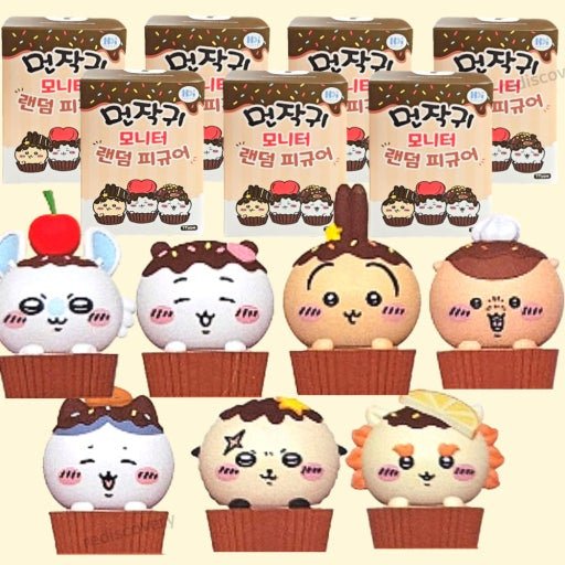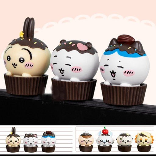 Each figure is designed with a cute dessert-style cupcake theme and fits perfectly on monitors, shelves, or desks as a decorative display.