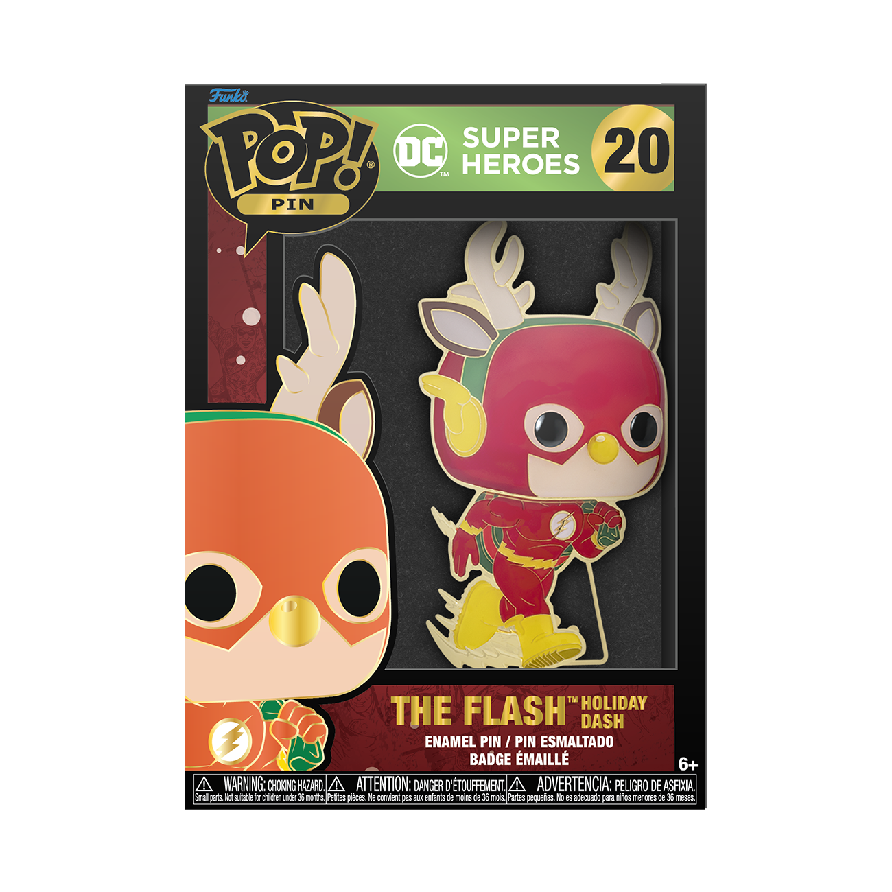 Bring home The Flash Holiday Dash Pop! Pin to host some reindeer games in your DC Comics collection! Enamel pin features shiny gold-colored hardware and a built-in stand.
