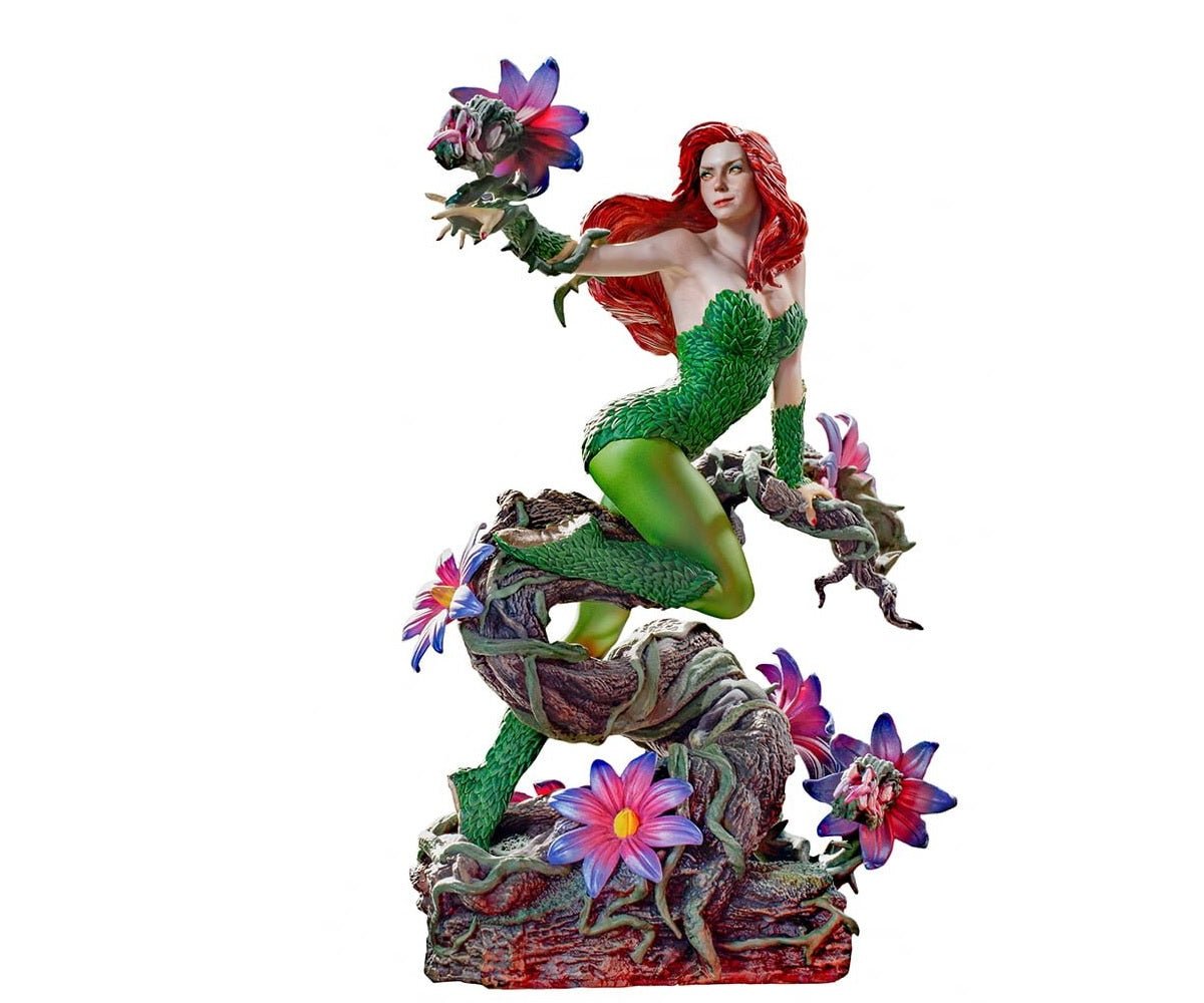 With her classic costume, the red-haired villain who uses plant toxins and pheromones in her crimes to control minds and create mutant plants, stands out on a tree base with realistic almost organic textures.