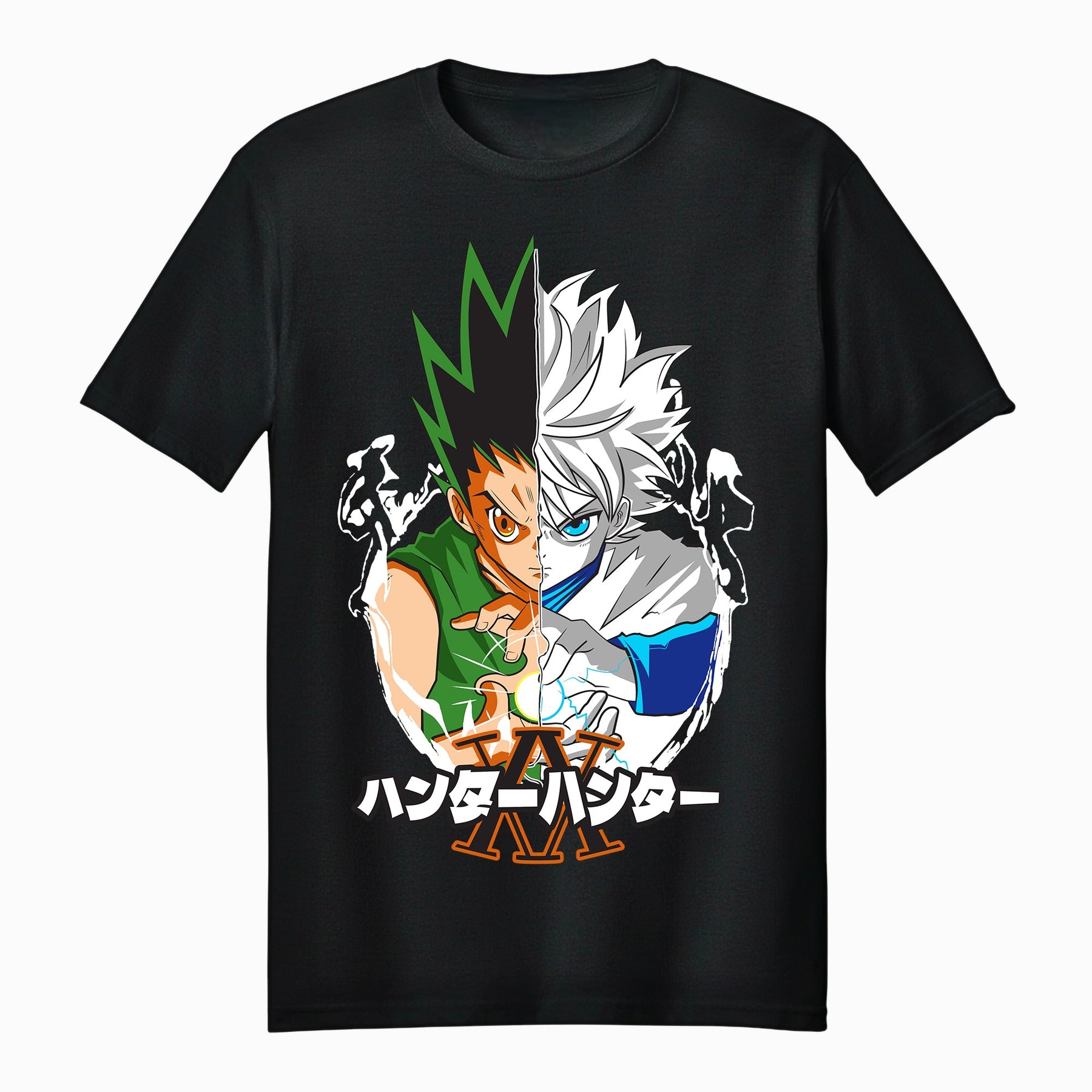 Celebrate friendship and power with the Fundom Hunter X Hunter Gon and Killua Tee. Featuring both heroes split down the middle in a stunning dual-tone layout, this shirt symbolizes their unbreakable bond and contrasting strengths.